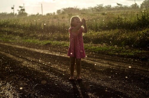 Человек танцует под дождем