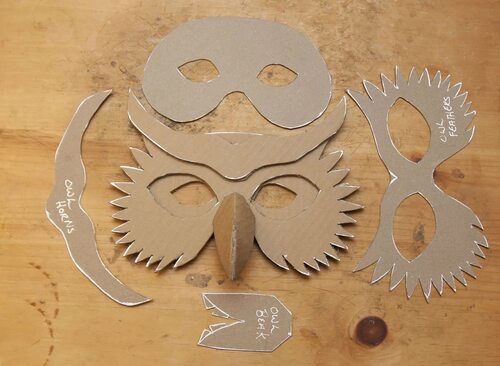 - Нарисуйте на картоне контур совы и вырежьте его с помощью ножниц.